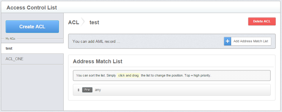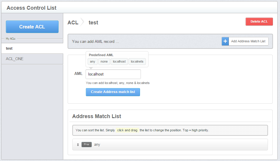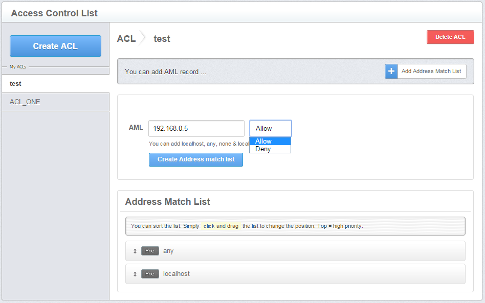 - Click DNS management > ACL> Create ACL > ACL Name > Create ACL name