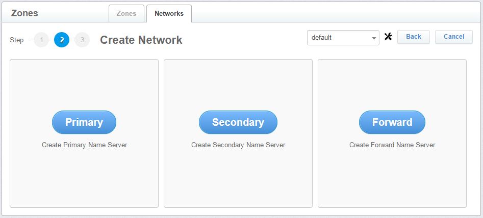 Click DNS Management > Domain > Default > Views > Network > Create Zone