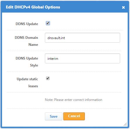 Follow these steps to enable Dynamic DNS Updates by the DHCPv4 service running your DNSVault: