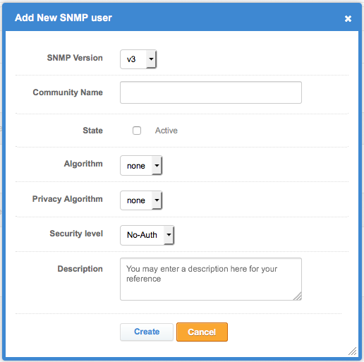 SNMP Users can be manage through web GUI. Figure 1.2.2.2-a show the list of SNMP user if available.