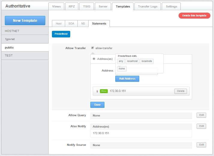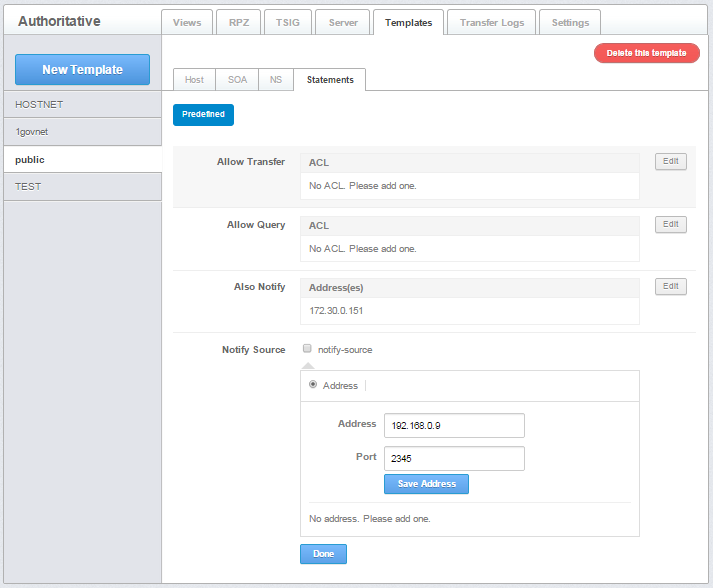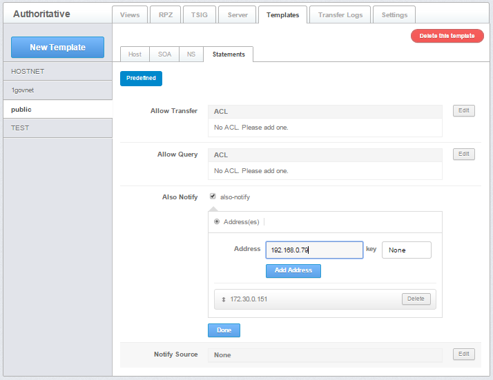 Notify Source - defines the IPv4 address (and optionally port) to be used for outgoing NOTIFY operations. The value '*' means the IP of this server (default)