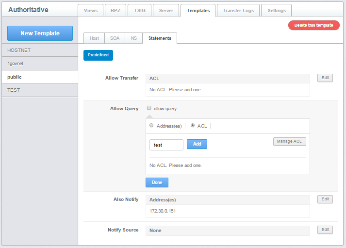 Click DNS management > Domains > Templetes > Statement