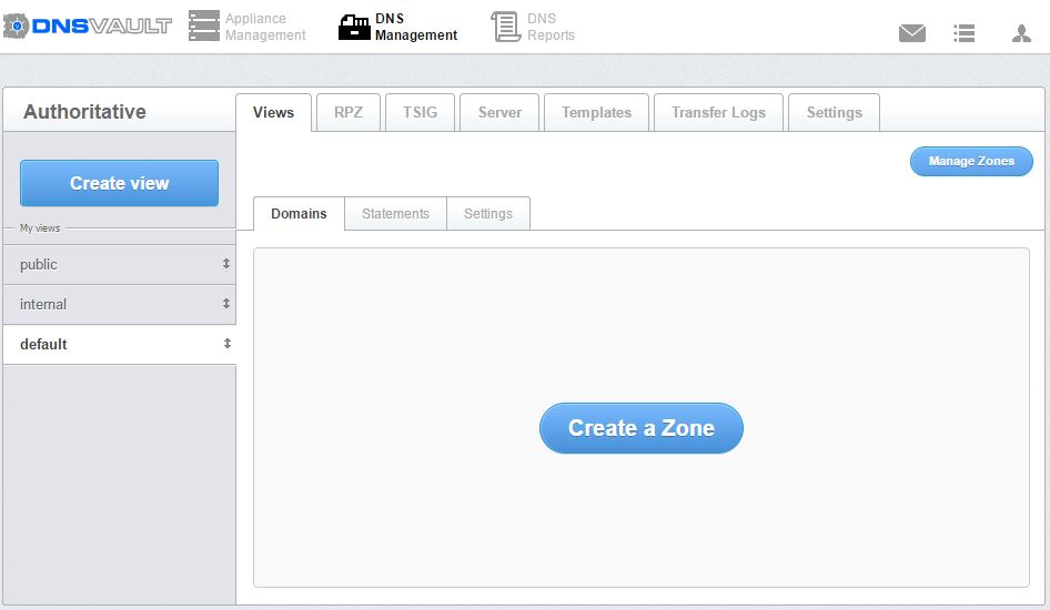Click DNS Management > Domain > Select any view list.At Views tab, user can manage: